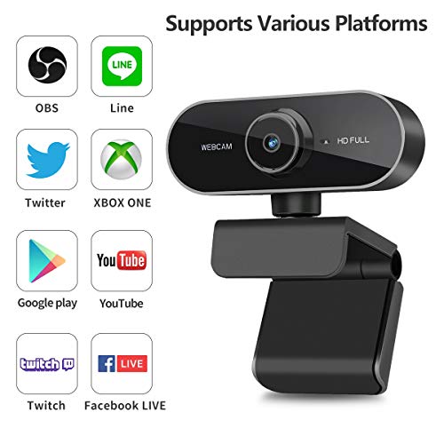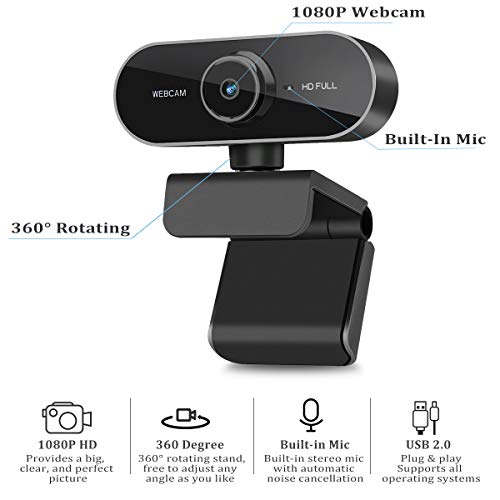 Webcam con Microfono, Webcam 1080P HD per Desktop/Laptop/Computer/PC - Web Camera USB per Video Chiamate Registrazione Conferenze, Streaming dal Vivo, Webinar-Compatibile con Windows Android iOS Linux