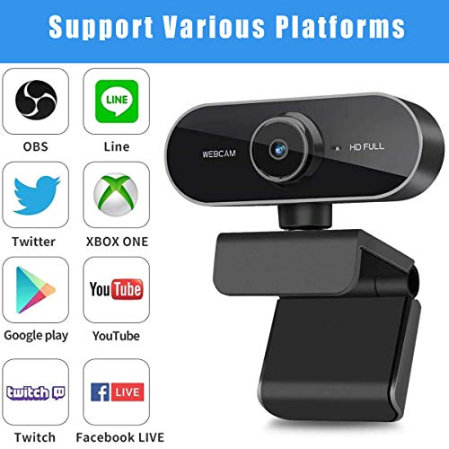 Webcam per PC con Microfono, 1080P Webcam, USB Videocamera per PC, Laptop y Mac, per Videochiamate, Giochi, Studio, Conferenza, Streaming Live