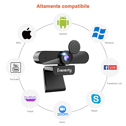【Webcam PC Copertura e Treppiede per la Privacy, Rotazione a 360 °】 Everenty protegge sempre la tua privacy in alto, viene fornito con una copertura per la privacy per proteggere la tua privacy. Obiettivo della fotocamera contro sporco e detriti per garantire che il tuo video rimanga nitido per tutta la vita della fotocamera, questa webcam fornis