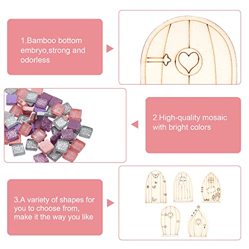 Kit divertenti per bricolage: il kit contiene 5 porte di forma diversa (circa 6,1 x 0,3 x 10,2 cm) e ricchi pezzi di mosaico. La porta della fata del mosaico è piena di mistero, che attirerà l'attenzione dei bambini per esplorare un mondo magico e indulgere nella creazione. (Promemoria: per motivi di trasporto, colla,la polvere di riempimento non è inclusa, si prega di essere pronti a prepararsi da soli. )