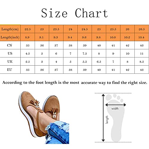 WECDS Sandalias para Mujer Sandalia de Cuero con borla y Plataforma Zapatos con Hebilla de Punta cerrada Moda con flecos Cómodo Verano Nuevo