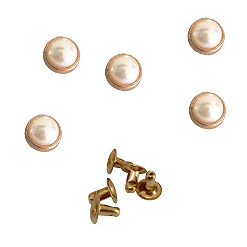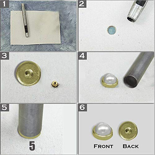 PERLA IMITANTE: la perla bianca ha una dimensione totale di 8 mm, ideale per l'uso decorativo. La confezione include 50 pezzi di rivetti di perle da 12 mm e uno strumento manuale