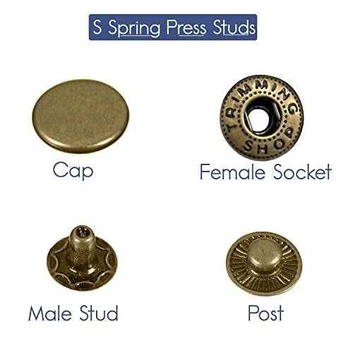 WedDecor Bottoni a pressione con molla a S, da 17 mm, 4 pezzi, per lavori in pelle, cucito, giacche, camicie, tessuti, riparazioni, progetti fai da te, bronzo, 50 pezzi