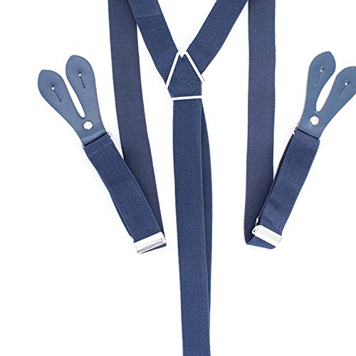 WedDecor Uomo Bretelle Elasticizzato & Regolabile Forma a Y Resistente Bottoni Foro Bretelle per Pantaloni, Jeans, 25mm Largo, Nero con Bianco Pois - Navy, Clip On