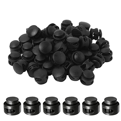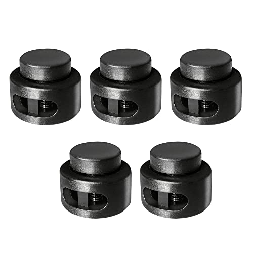 WedDecor Coulisse Bianco Cavo Stopper Cavo Serrature con Doppio Foro Bottoni Toggle E Ampio Spingere Bottoni per Sacchetti, Paracord, Giacche, Bagagli, 1pc - Nero