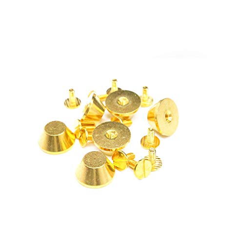 WedDecor Ottone Secchio Fungo Cono Vite Posteriore Piatto Borchie Rivetti per Leathercraft Borse Scarpe Borchie Punk Vestiti Decorazione Fai da Te Progetti, 10mm - Dorato, 10MM