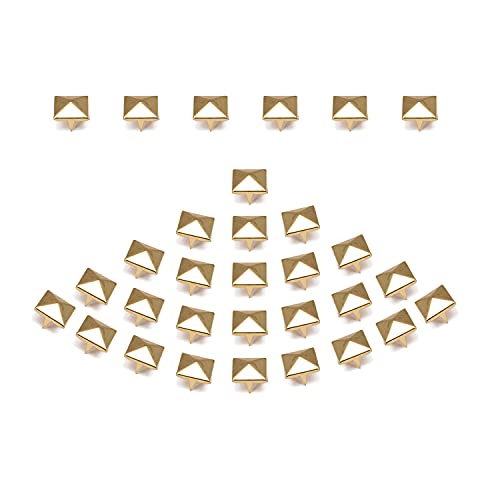 WedDecor Piramide Forma Punta Quadrato Borchie Punte Unghie Testa Rivetti per Decorazione Cinture, Borse, Scarpe, Leathercrafts, Punk & Goth Moda Accessori, 50pcs - Oro - 12mm, 100pcs
