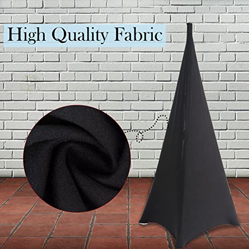 WedDecor Tripod Speaker Stand Stretch Copertura, Triplo Fronte Retro Scrim 360 Degree Copertura, Nero Spandex Lycra DJ Gonna with 3 Lati Tasca - Ideale per luminosità Effetto (Singolo) - Nero, 2pcs