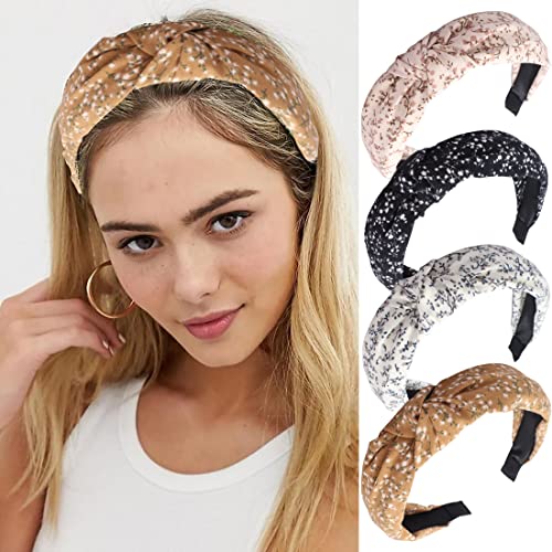 WeddHuis Fascia Capelli Donna Larga in Tessuto Elastico - 4 Pezzi Tinta Unita con Nodo per Accessori Capelli - Perfetto per Cerimonie ed Eventi