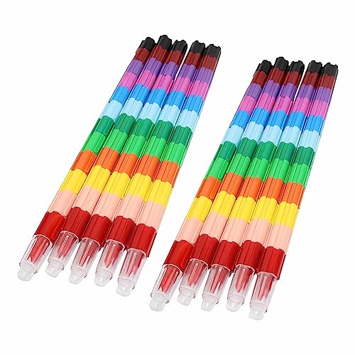 WeddHuis 10 pastelli impilabili per bambini - Pastelli a cera assemblabili e deformabili, 12 colori vivaci ideali per cancelleria creativa, compleanno o attività artistiche