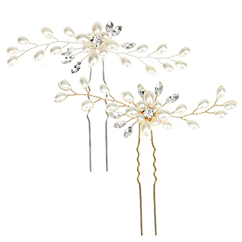 WeddHuis 2 Pezzi Confezione da 2 forcine per capelli da sposa con cristalli dorati,comunione e feste - inclusi brillantini per capelli, mollette bimba, coroncina sposa