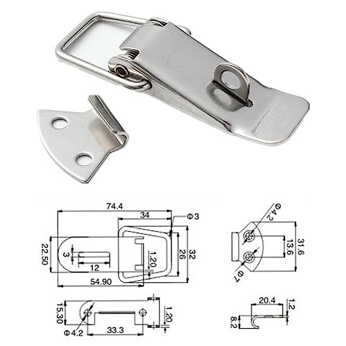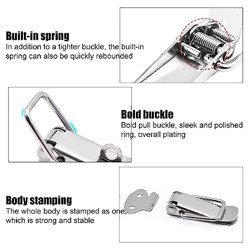 WeddHuis 3 Pezzi Fermaglio a Molla Leva Chiusura in Acciaio Inossidabile, 55mm Chiusura a Molla con Chiusura a Scatto, per Cassette Degli Attrezzi, Cassetti, Armadi, con 8 Viti
