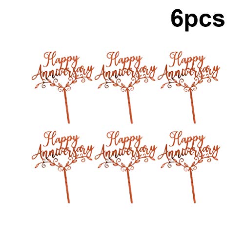 6PCS Wedding Anniversary Cake Decoration Happy Anniversary Lettere Stampate Cake Toppers Acrilico Wedding Memorial Cake Plug Rose Gold