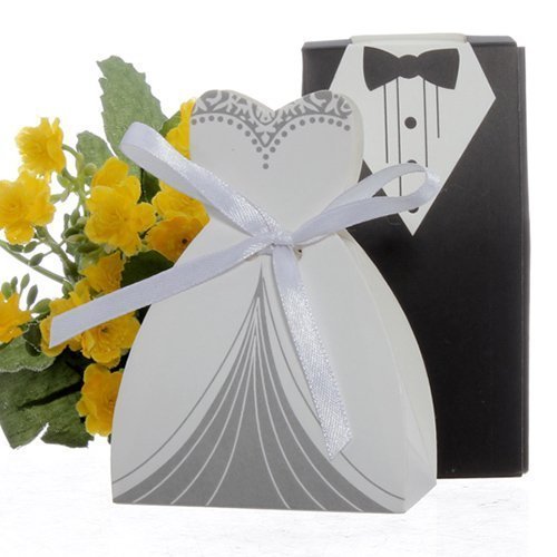 Fgf wedding Candy 100 pezzi creativi vestito sposa e sposo smoking porta-caramelle wedding Gift Box (50 sposa & sposo 50)