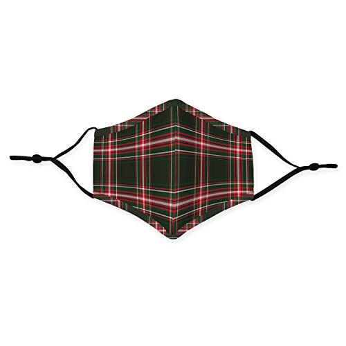 WEDDINGSTAR Maschera facciale in tessuto lavabile per bambini Copertura protettiva in tessuto riutilizzabile e regolabile con tasca per filtro antipolvere - Plaid rosso e verde