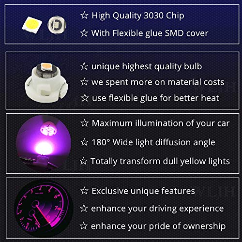 WLJH 10x Rosa T4.7 Neo Wedge 3030 Chip 12mm Strumento per auto Cluster Led Cruscotto Calibro Lampadina HVAC AC Riscaldatore Climatizzatore Interruttore Lampade radio Sostituzione della luce interna