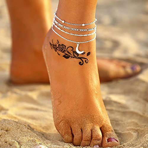 Wedity Cavigliere con ciondolo luna a strati Braccialetti con cavigliere con perline in argento Accessori da spiaggia Gioielli per piedi regolabili per donne e ragazze