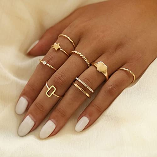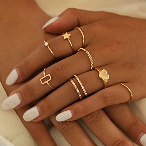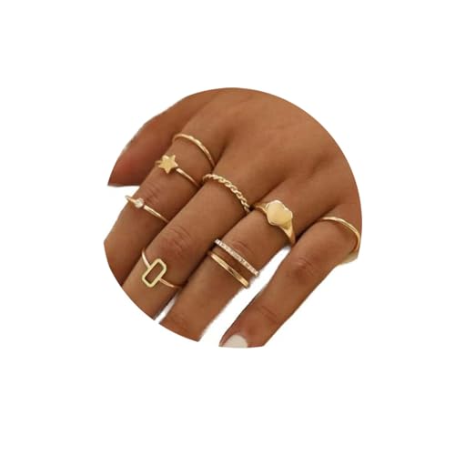 Wedity Boho Star Moon Flower Leaves Cuore di cristallo Ritratto di loto Modello Knuckle Ring Anelli impilabili in oro Set Anelli di barretta Gioielli per donne Ragazze (C)