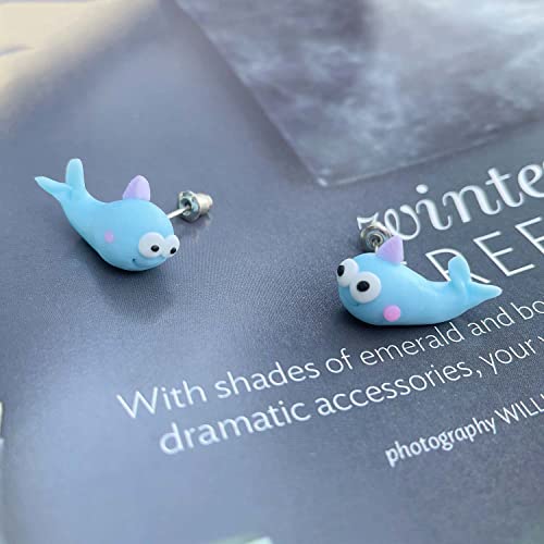 Wedity Orecchini Animali Simpatico Cartone Animato Fatti A Mano Argilla Morbida Pesci Colorati Coniglio Arcobaleno Pony Orecchini a Bottone Gioielli per Donne e Ragazze (pesce azzurro)