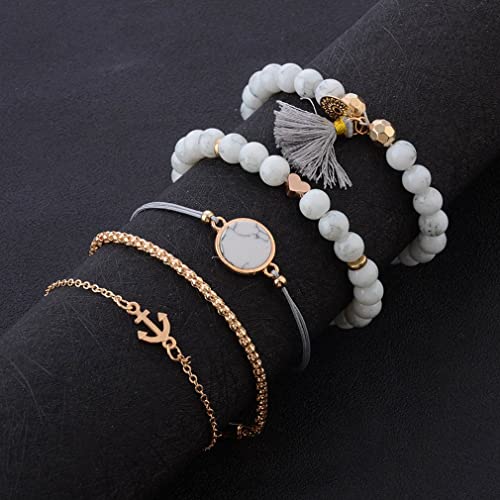 Wedity 5 pezzi multistrato fortunato 8 bracciali luna mappa pinguino ananas nappa loto ali d'angelo accessori per le mani regolabili per donne e ragazze (2A)