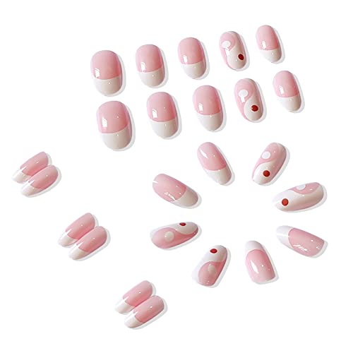 Wedity 24 PCS Long Round Head Nail Stickers French Tai Chi Fake Nails Manicure Stickers Jelly Glue Stickers Press on Nails False Nails (tai chi)