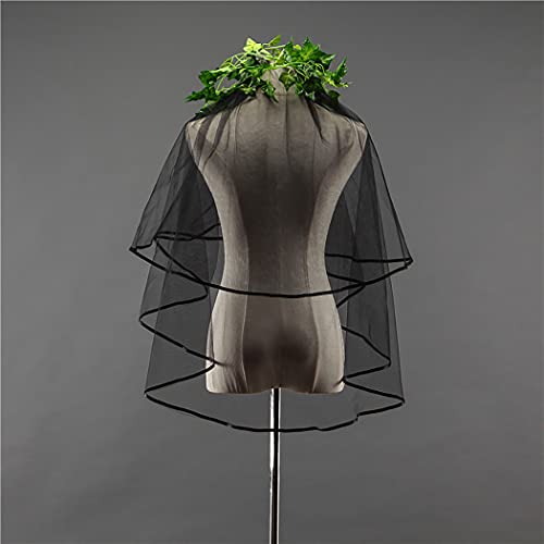 Wedity Velo da Sposa a 2 Livelli Velo Corto con Bordo in Nastro Accessori per Capelli da Sposa da Sposa Copre il Velo con Pettine per Donne e Ragazze (Nero)
