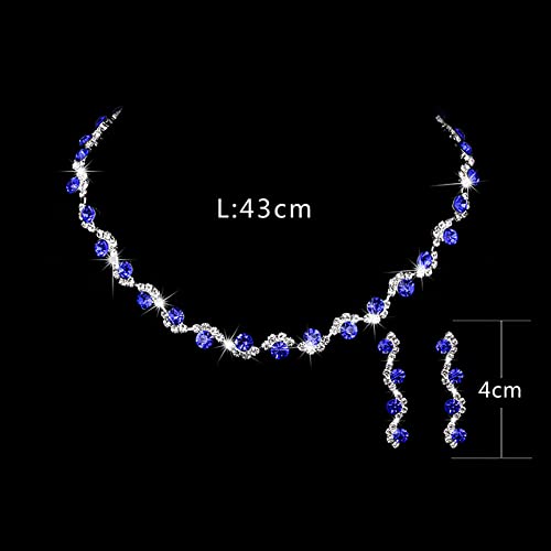 Wedity Wedding Collana di Cristallo Orecchini Set Sposa Girocollo Collane Gioielli da Sposa per Donne e Ragazze (Blu)