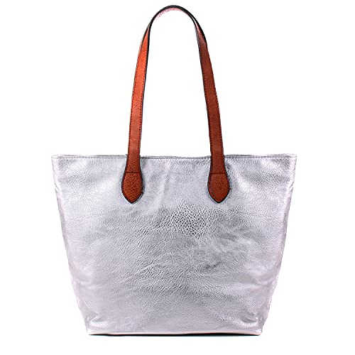 WEDMAY - Borsa a tracolla da donna, leggera, da lavoro, Argento, Medium