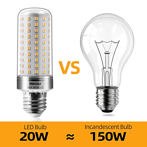 WEDNA Lampadine LED E27, 20W Lampade Equivalenti a 150W, 2000Lm, Luce Bianca Calda 3000K, Lampadine Led a Risparmio Energetico, Non Dimmerabile, Confezione da 3