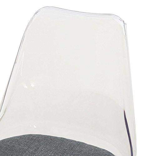 H.J WeDoo Set di 4 Sedie Trasparenti in Policarbonato, Sedie Cucina Moderne Scandinavo Design Sedia da Pranzo con Gambe di Legno e Morbido Cuscino di Stoffa - Grigio