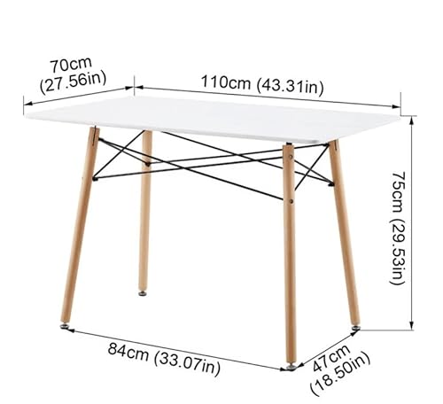 H.J WeDoo Tavolo da Pranzo Design Moderno Rettangolare MDF Gamba quadrata in faggio 110 x 70 x 73 cm Bianco