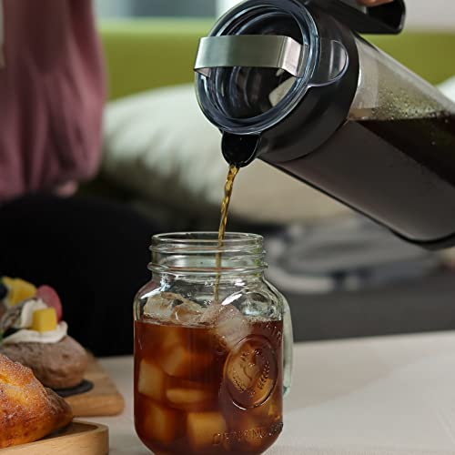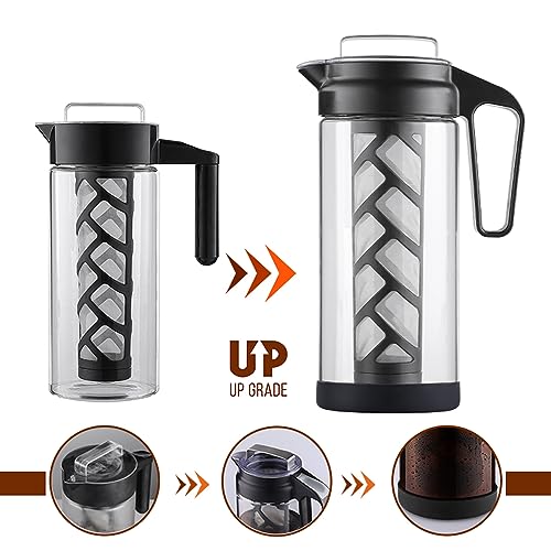 Wedrink Cold Brew Coffee Maker Caffettiera a freddo da 1,3 litri con vetro extra spesso, filtro in acciaio inox e base in silicone antiscivolo, Caraffe per tè freddo