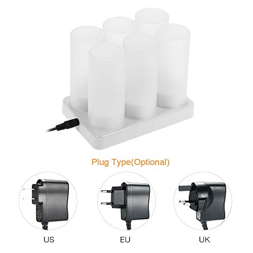 Weehey 6pcs/Set Ricaricabile LED Flickering Candele Senza Fiamma Candele Tealight Luci con Tazze Glassate Base di Ricarica Luce Gialla Ac100-240V