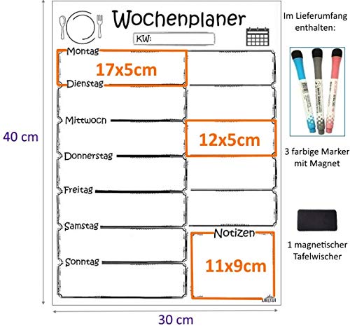 Alta qualità: l'agenda settimanale è realizzata in materiali durevoli e forte magnete, aderisce molto bene alle superfici metalliche. Dimensioni: altezza 405 mm, larghezza 305 mm. Ideale anche come regalo per la famiglia.