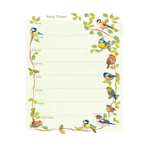 Weekly Planner Pad - GARDEN BIRDS design with SHAPED EDGE - use as meal planner, jobs list or for messages