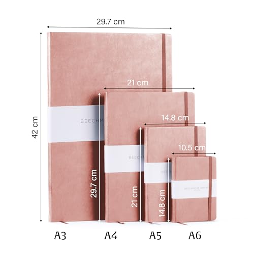 Carta più spessa (160 facciate, 80 pagine): Ogni quaderno contiene pagine nitide, a righe color avorio crema. Con 120 g/m², la nostra carta è più spessa della maggior parte delle altre marche, assicurando che ogni pagina sia resistente a sbavature di inchiostro, cancellazioni, aloni e ombreggiature. Dimensioni: A5 (21,3 x 14,8 cm).