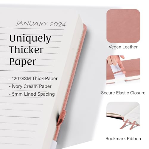 Weekly Planner - Premium A5 Journal by Beechmore Books | 2024 Diary | Hardcover Vegan Leather, Thick 120gsm Cream Paper, Professional Lined Notebook in Gift Box, 21 x 15 cm (Rose Wood)