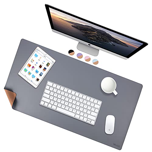 Weelth Tappetino da scrivania bifacciale in sughero naturale e pelle, per ufficio/casa/gioco (grigio, 80 x 40 cm)