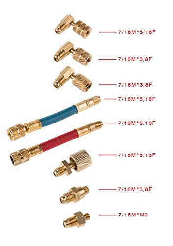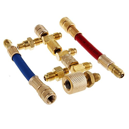 Kit completo: 8 in 1 adattatore per tubi di condizionamento d'aria: Ideale per i sistemi A / C di automezzi R134a e R12