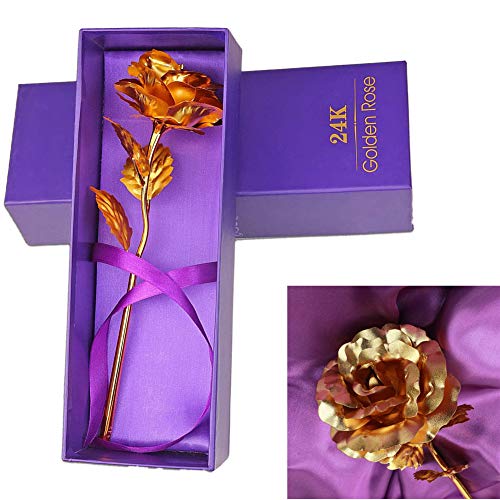 WeFoonLo Creative Artificial 24K Gold Rose Flower Plastic Real Rose immerso in Oro con Confezione Regalo per la Festa della Mamma, Compleanno, Giorno del Ringraziamento (Oro)