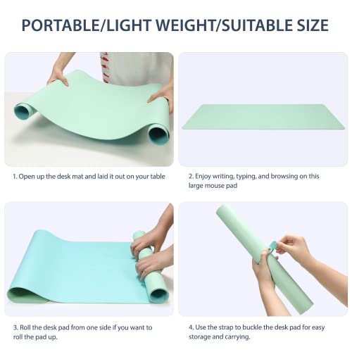 Wehilion Tappetino da scrivania, tappetino per mouse da gioco, 90 x 45 cm, in PVC, impermeabile, per ufficio o casa, double face, verde chiaro/blu lago