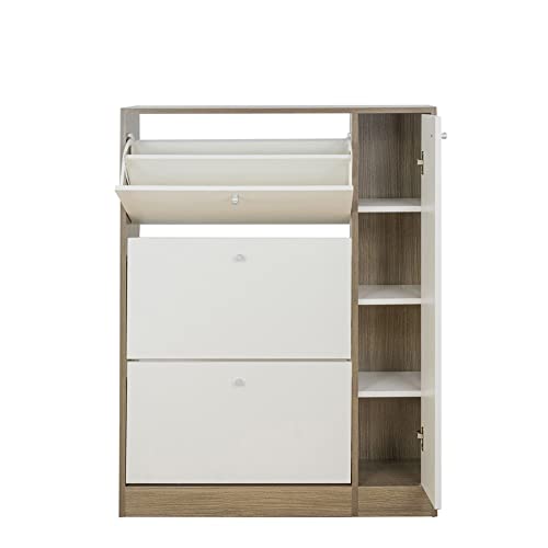 WeHome - Scarpiera multiuso un'anta e tre ripiani, per camera da letto o cameretta di ragazzi, salotto, ingresso, colori e design moderni, scarpiera piccola (Rovere chiaro e bianco)