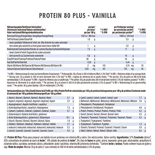 Protein 80 Plus è un prodotto dietetico per sportivi in polvere con edulcoranti