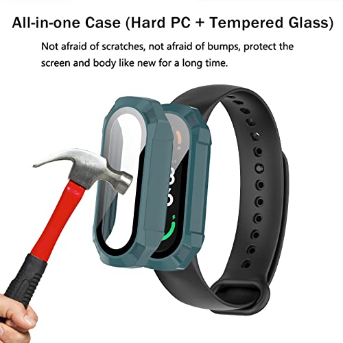 Weideworld [2 Pezzi] Cover con Pellicola Vetro Temperato per Xiaomi Smart Band 7, Pieno Ultra Sottile Rigida Paraurti Custodia PC per Xiaomi Mi Band 7, Nero+Verde