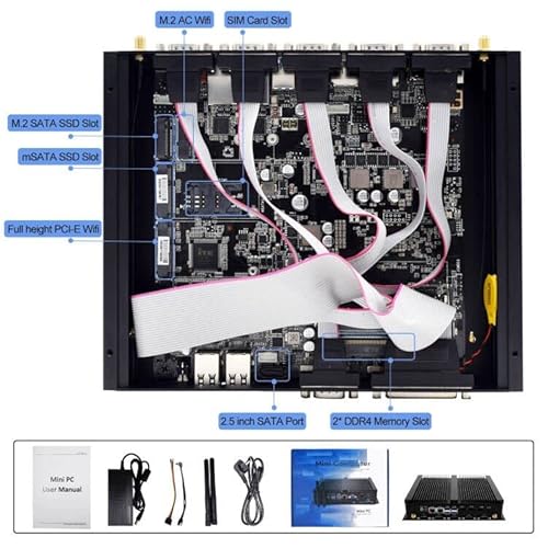 WEIDIAN Mini PC senza ventola, PC desktop senza ventola Core i7 8550U Mini computer desktop con grafica HD, Windows 10, DDR4 32G RAM/ 512G SSD, 2Lan HDMI DP EDP LPT SIM / 4K / Wi-Fi/Bluetooth 4.0