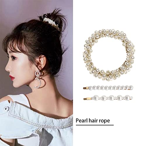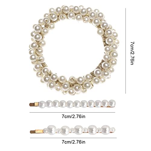WEIESCIE Perle Elastici per Capelli Donna, 3 PCS Scrunchies di Perle Elastico Mollette per Capelli Perle Fermagli Forcina Elegante Pinza Capelli Antiscivolo Accessori Capelli