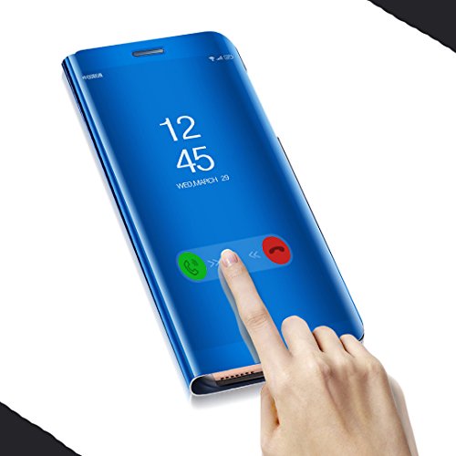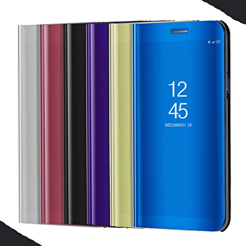 WEIFA Huawei V10 Shell, Perspective Window View Movie Flip Stand Reflective Make-Up Plated Mirror Cover, Smart Awake Sleep Phone Case for Huawei HonorV10, Scan QR Code App, Silver