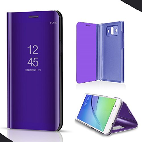 WEIFA LG V30 Case, Perspective Window View Movie Flip Stand Reflective Make-Up Plated Mirror Cover, Smart Awake Sleep Phone Case for LG V30, Scan QR Code App, Darkblue
