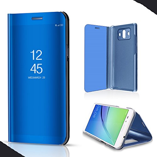 WEIFA LG V30 Shell, Perspective Window View Movie Flip Stand Reflective Make-Up Plated Mirror Cover, Smart Awake Sleep Phone Case for LG V30, Scan QR Code App, Dblue