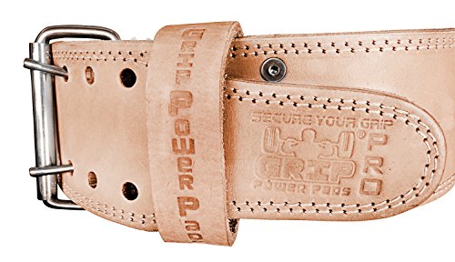 Weightlifting Belt - Double PRONG 100% Real Genuine Leather Individually Handmade 13MM Thick For Advanced Weight Lifting, Powerlifting & Bodybuilding 4” Wide (Natural Leather Color, Medium 28"- 34" Waist Size)